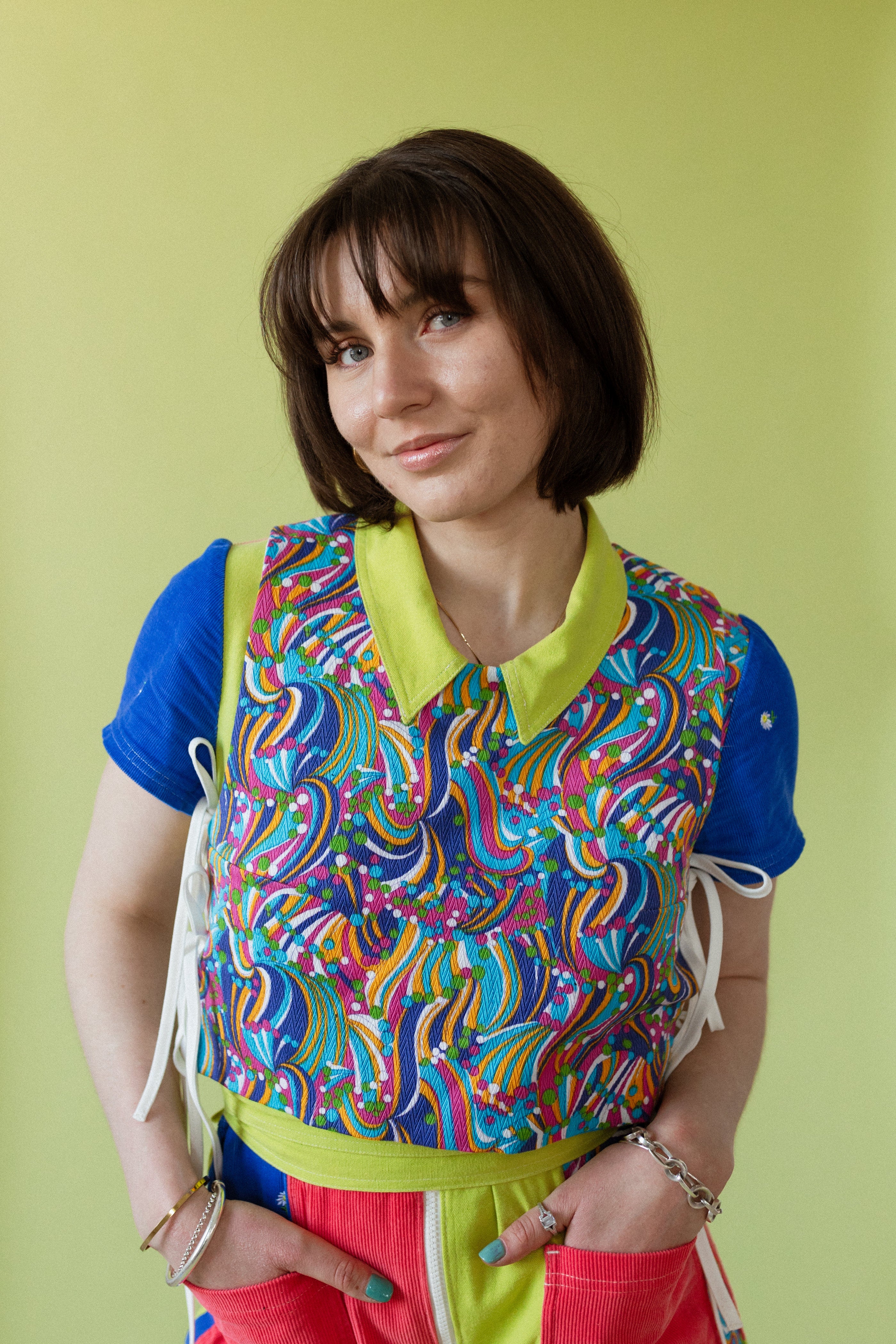 Hailey Wyatt is multidisciplinary artist and zero-waste fashion designer based in Montreal. Through an embodied and material-first creative process, she explores the intersection of emotional, biological, and ecological topics through textile art. With a background in Microbiology and Immunology, Hailey merges scientific curiosity with creative and technical craft-based expression. Grounded in the belief that waste is a design flaw, her work uses post-consumer textile remnants to create sculptural garments that challenge linear systems of disposability. Often inspired by microbial intelligence, she reimagines waste as a resource for infinite, circular transformation, and sees up-cycling as an act of resistance. Her pieces are made to evolve with the wearer, becoming softer and more beautiful through time.